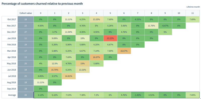 - Growth rate – It’s calculated by dividing the number of new users and renewed accounts by the churned accounts/users in a given timeframe. This helps you measure how paid usage of your product has changed over time.